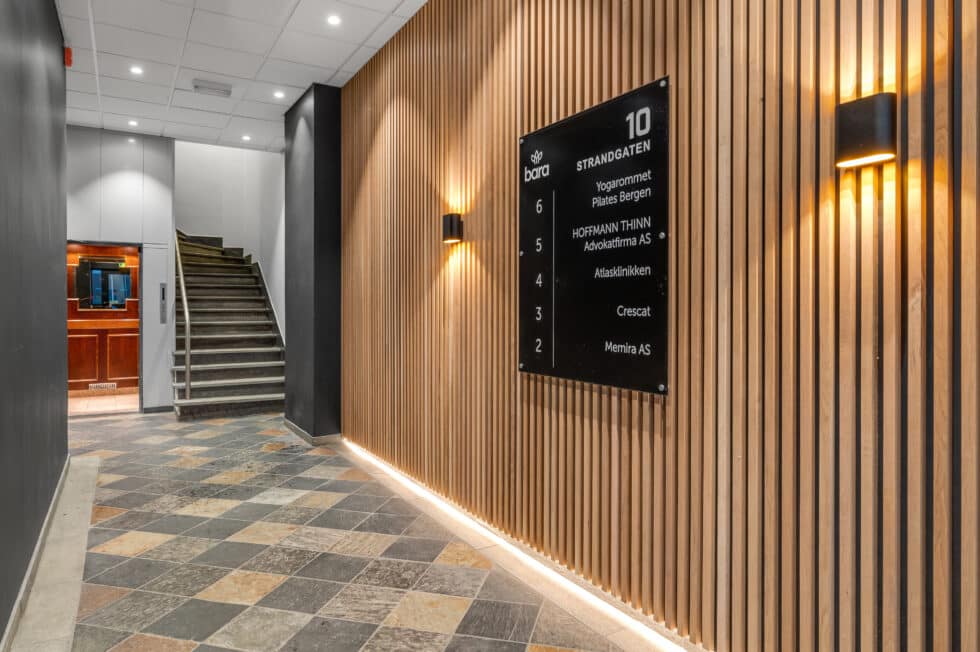 Du finner det ledige lokalet i 3. etasje, inngang direkte fra Strandgaten mellom Hans H. og Dressmann. Adkomst via trapp eller heis.